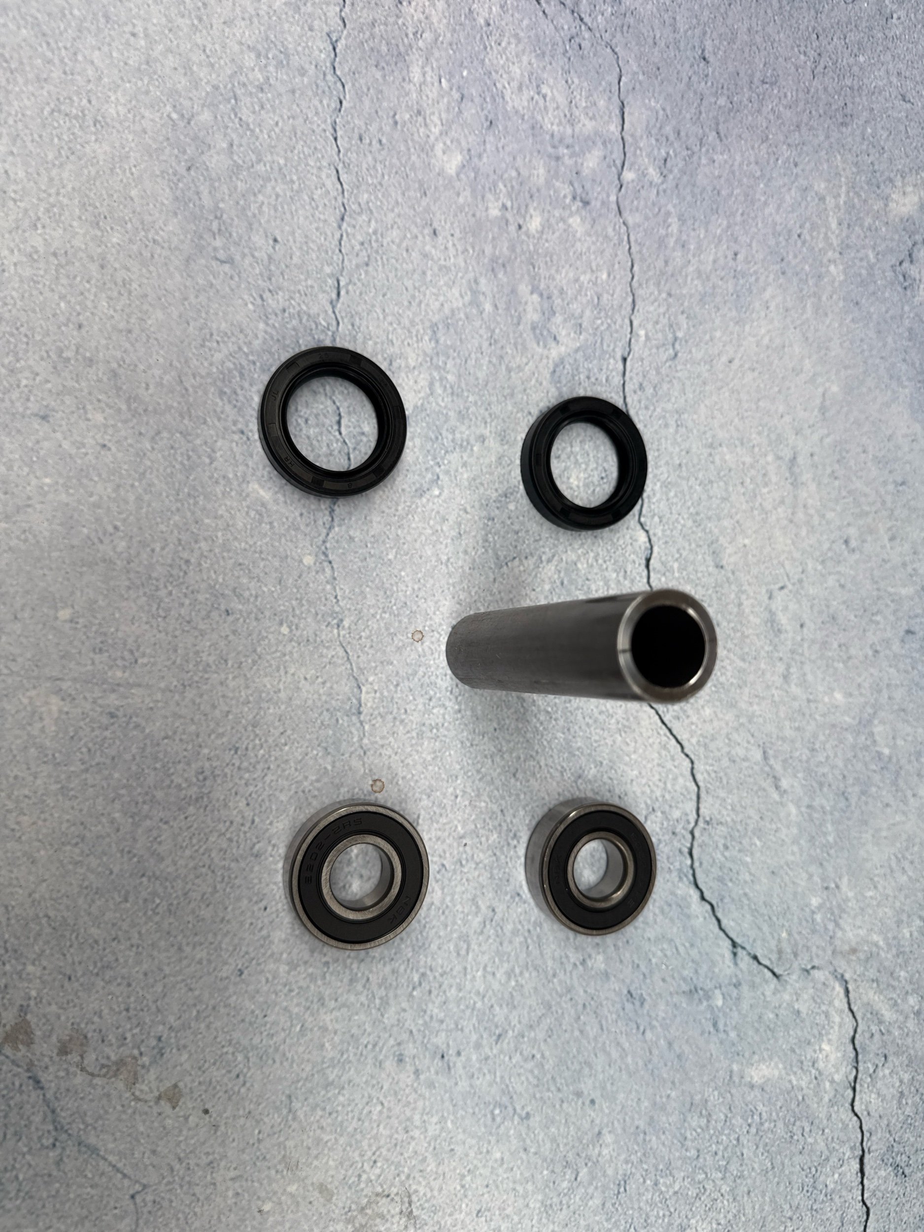 Rear wheel bearing kit with seals, spacer and bearings